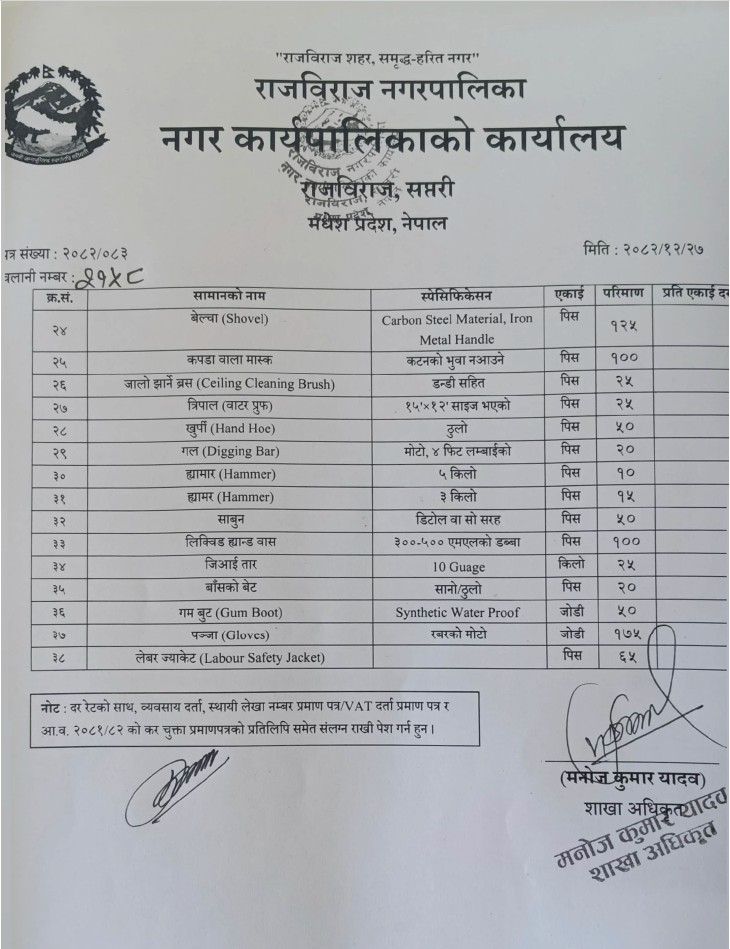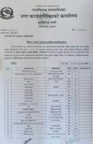 सरसफाई सामाग्री दररेट पेश गर्ने सम्बन्धमा ।