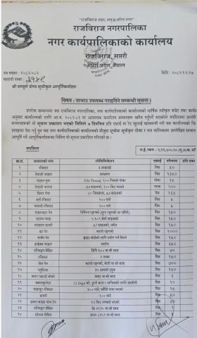कम्प्यूटर प्रिन्टर स्कानर फर्निचर आदिको दररेट पेश गर्ने सम्बन्धी सूचना ।