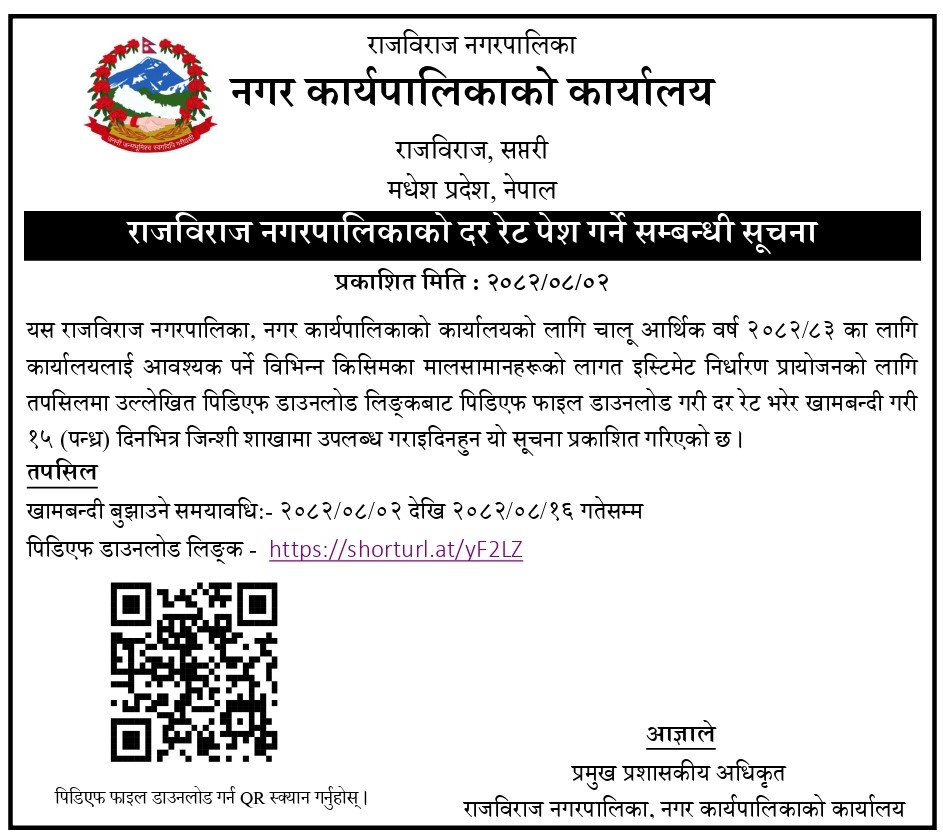 दररेट पेश गर्ने सम्बन्धी सूचना