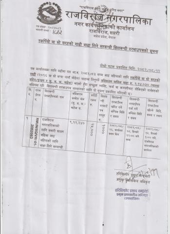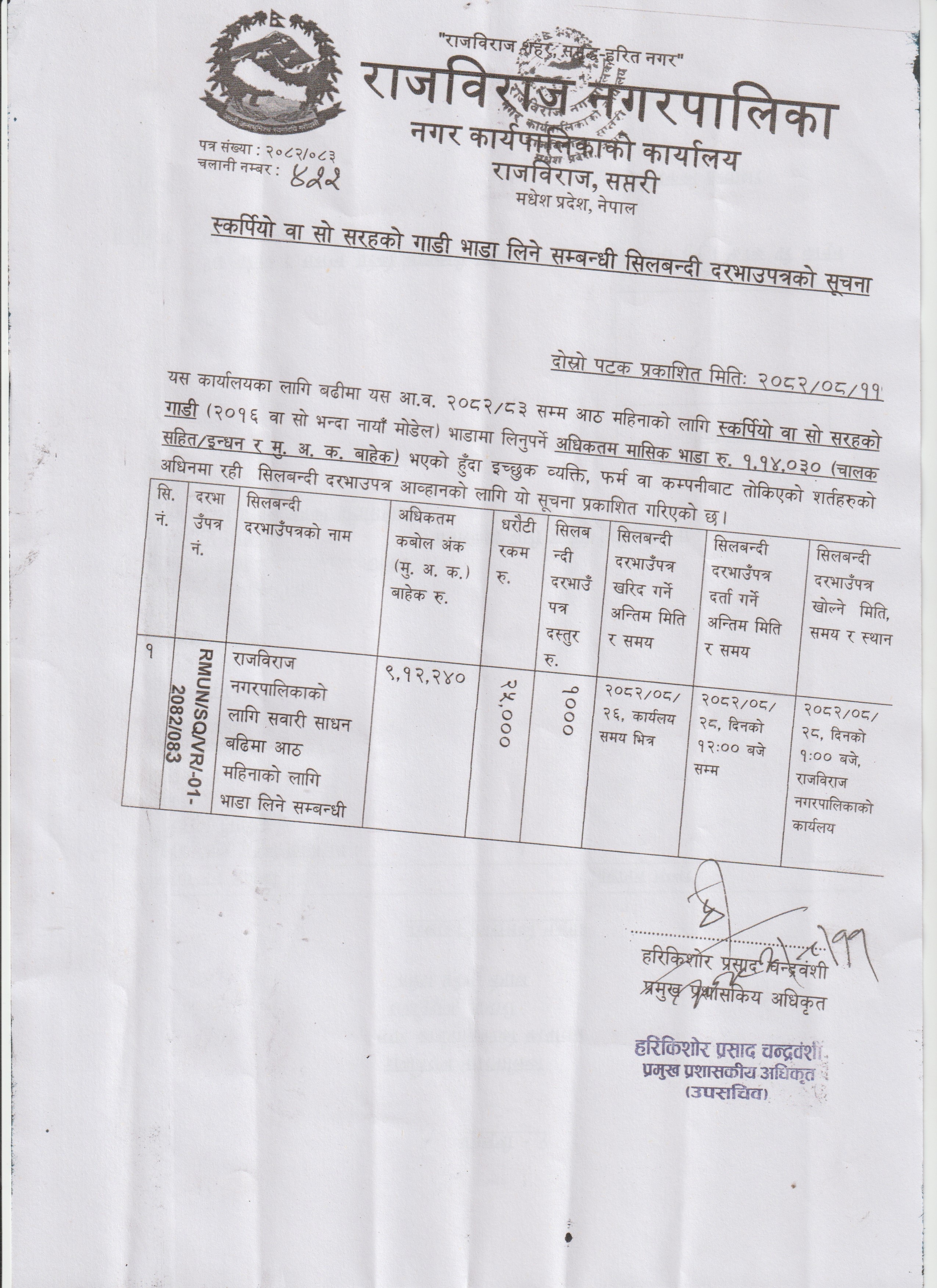 स्कार्पियो वा सो सहको गाडी भाडामा लिने सम्बन्धी शिलबन्दी दरभाउपत्रको सूचना।