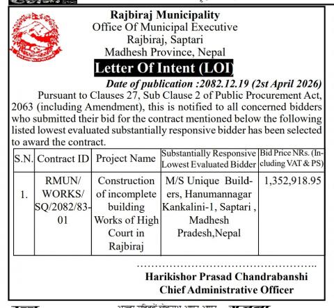 राजविराज बस पार्क शिलबन्दी बोलपत्र आह्वान सम्बन्धी सूचना ।