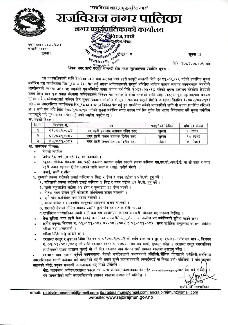 नगर प्रहरी पदपूर्ति सम्वन्धी दोस्र पटक खुल्लारुपमा प्रकाशित सूचना ।