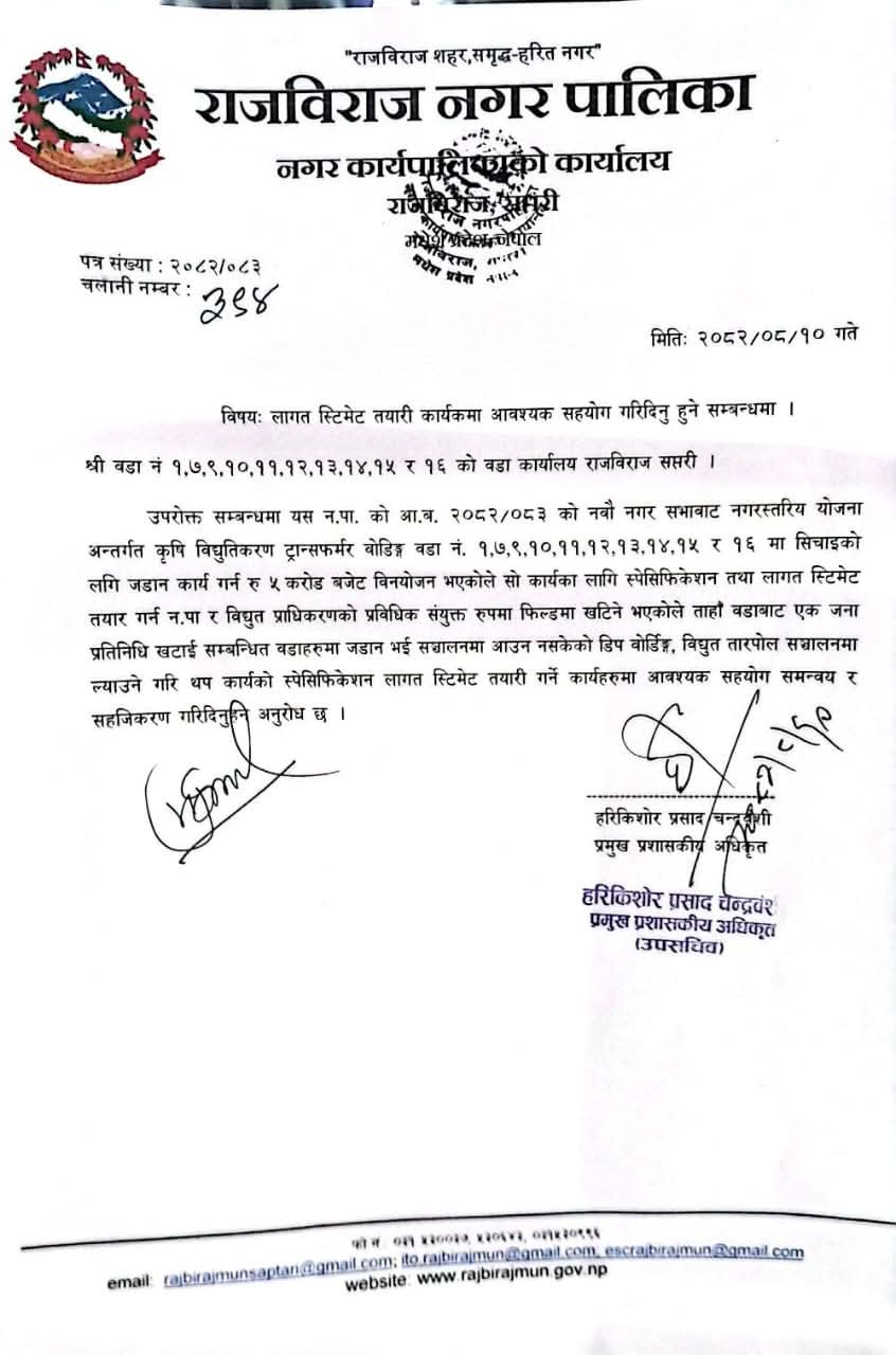 नगरपालिकाका विभिन्न वडा मा संचालन हुने सिचाई आयोजनाका लागत ईस्टिमेट तयार सम्बन्धी