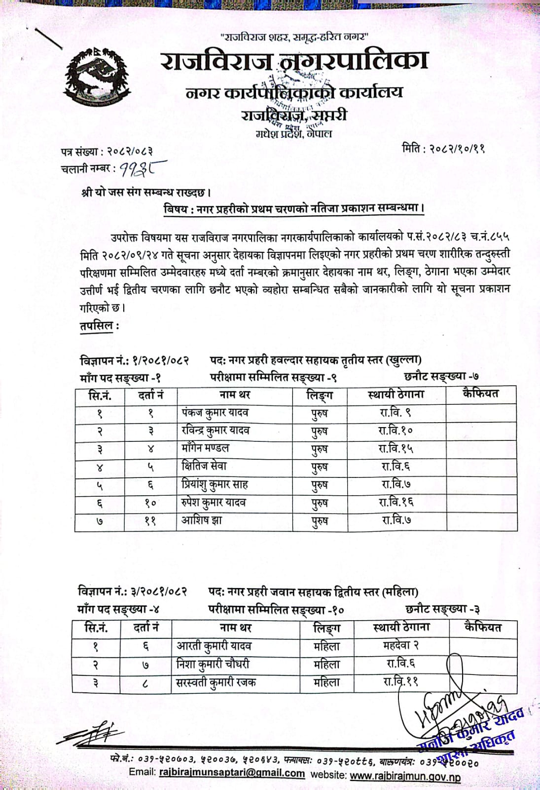 नगर प्रहरीको प्रथम चरण नतिजा प्रकाशन सम्बन्धमा ।