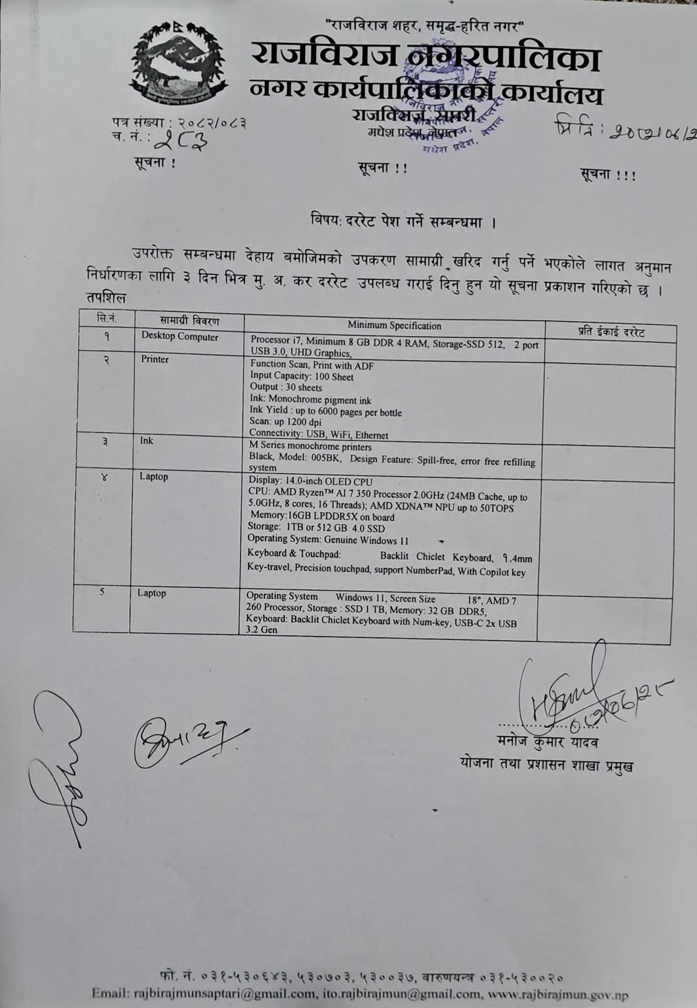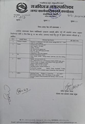 कम्प्यूटर ल्यापटप प्रिन्टर दररेट पेश गर्ने सम्बन्धमा ।