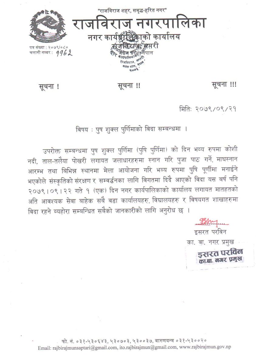 शुक्ल पूर्णिमा विदा सम्बन्धमा ।