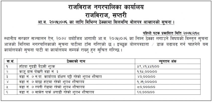 राजविराज बस पार्क शिलबन्दी बोलपत्र आह्वान सम्बन्धी सूचना ।